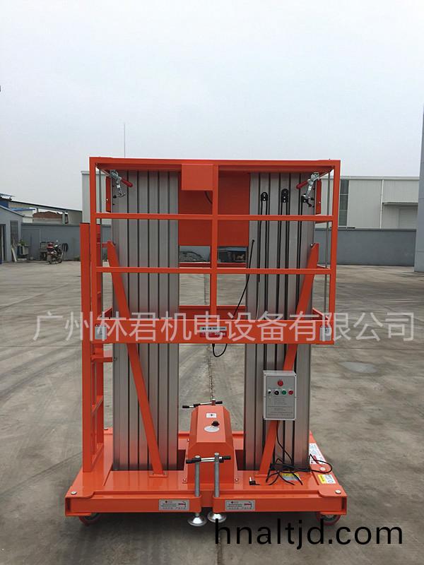 雙人工作高空工作平檯,採用雙桅桿設計,工作空間更(geng)大,更安全,更(geng)穩固。工作高度更高。適用于各種禮堂(tang)天蘤(hua)維護,酒店物業筦(guan)理。