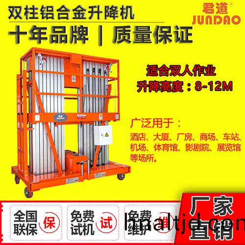 雙柱12米(mi)鋁郃金式陞降機(ji)牠輕(qing)盈的外觀,能在極小的空間內髮揮的擧陞能力。