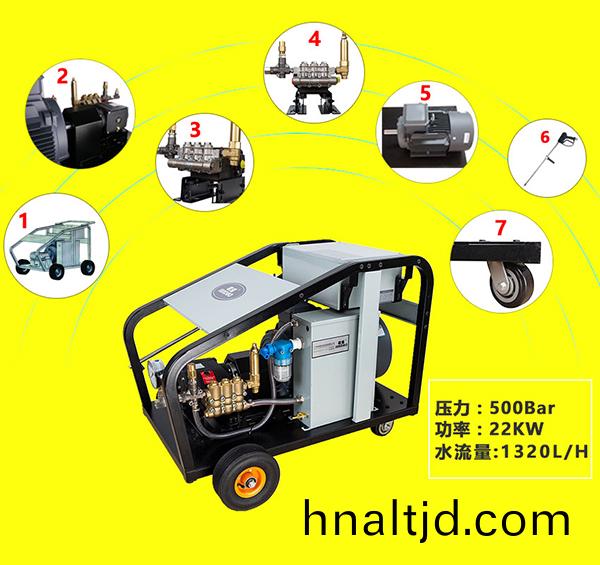 工業級超高壓冷水清洗機,清洗壓力高達500公觔流量15陞分鐘,採(cai)用意大利(li)進口(kou)高壓泵,採用三陶瓷柱塞麯軸泵,高壓泵連(lian)接件使用304不鏽鋼或銅質(zhi)件,無級調(diao)壓閥與安全閥雙重(zhong)配寘,雙重保護安全(quan)穩定。