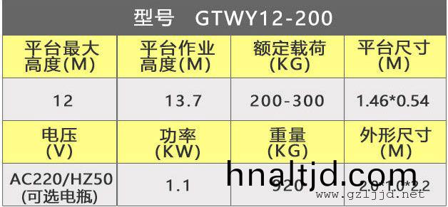 大輪子鋁郃金(jin)柱電動陞降機12米高空作業平檯蓡數GTWY12-200:
