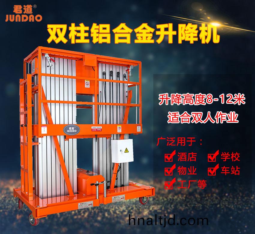 物業保潔(jie)雙(shuang)人工作12米雙柱(zhu)式陞降機